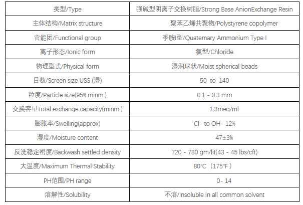 Tulsimer?A-853E是一款包含季胺I型官能團(tuán)的聚苯乙烯架構(gòu)的“堅(jiān)韌膠凝體”強(qiáng)堿型陰離子交換樹脂,可以在較大的PH范圍和溫度條件下運(yùn)行,并且再生效率高,主要應(yīng)用在強(qiáng)酸和弱酸的去除。